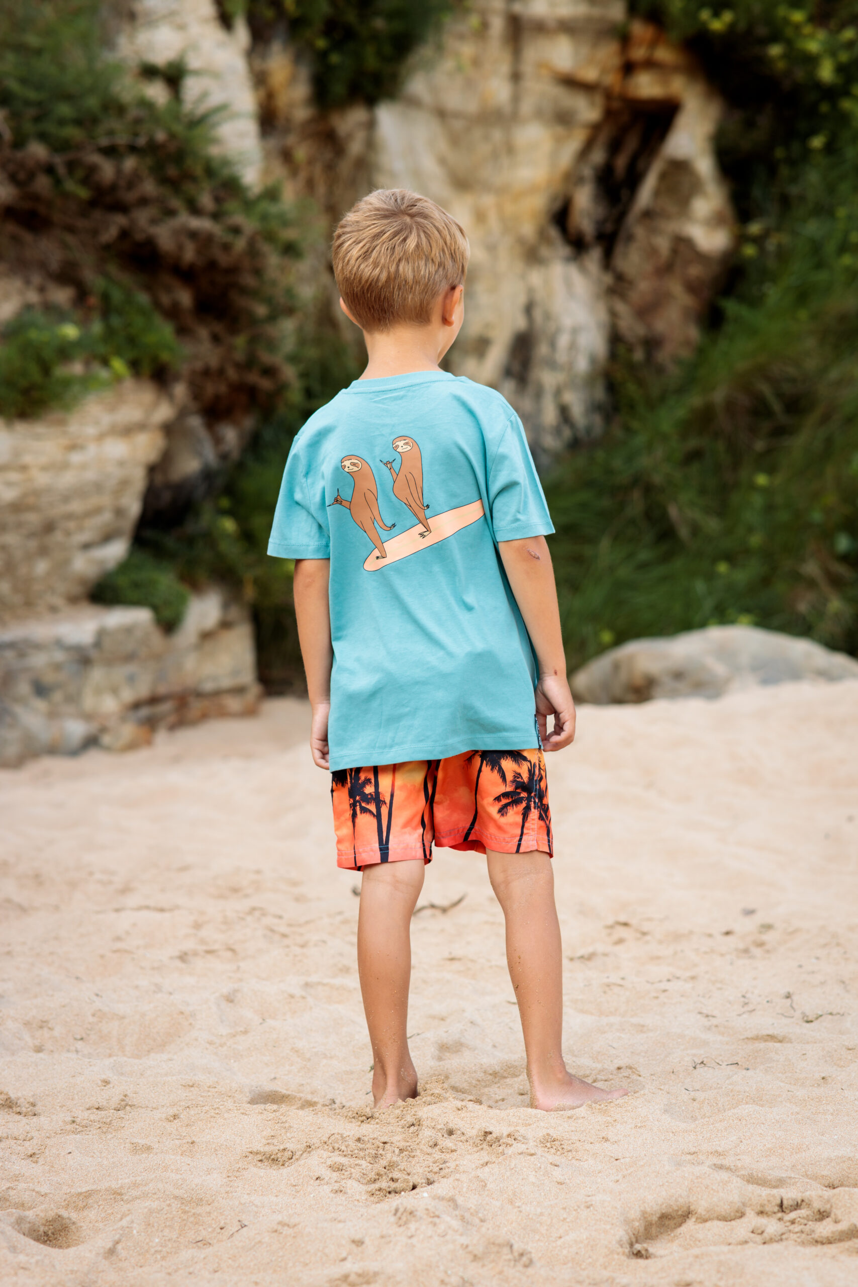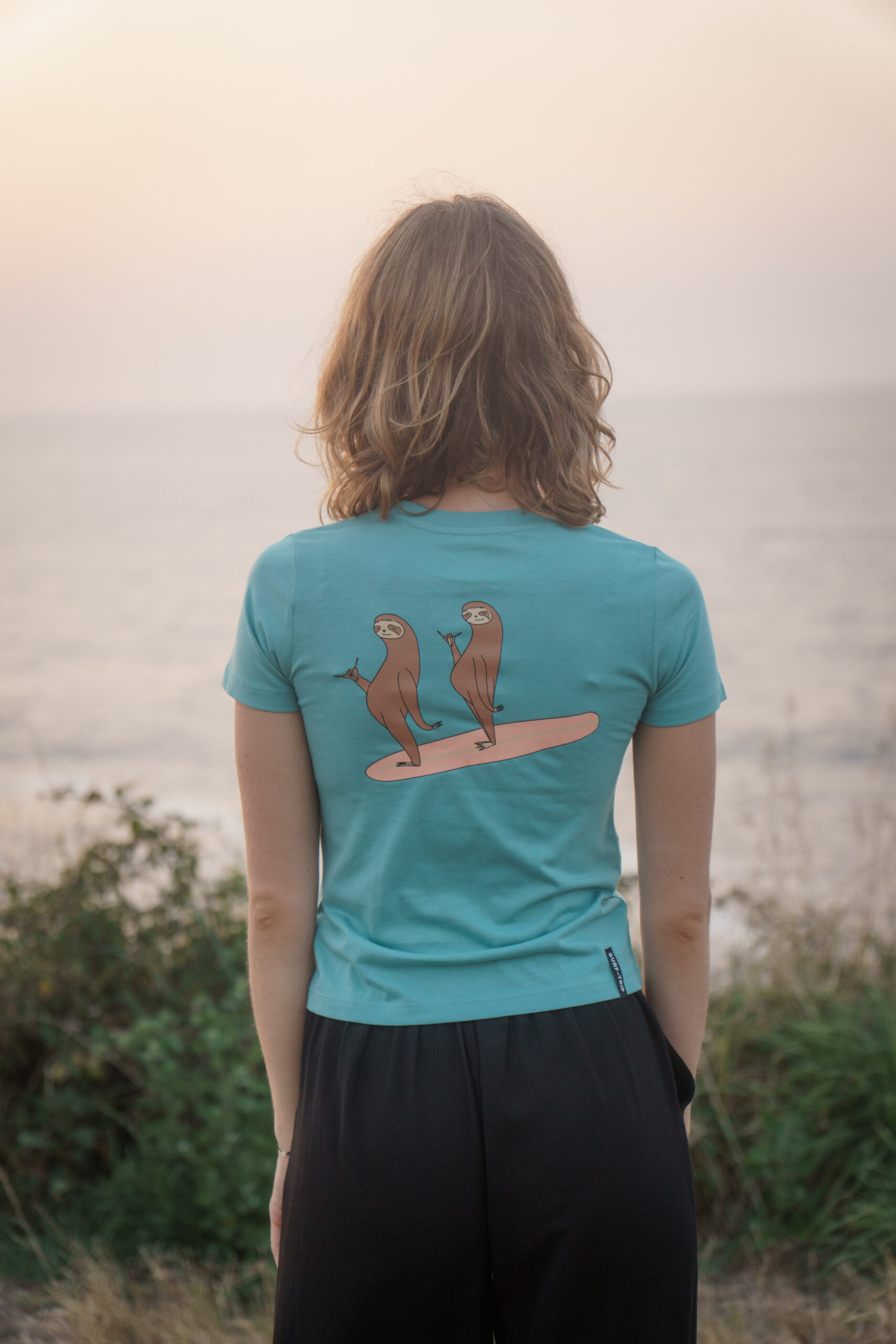 Obrázek lenochodů nakreslila talentovaná Nicole Ammerová, která za námi dorazila na surf-trip do francouzského Léonu a každý týden si pobyt prodlužovala a prodlužovala, až zůstala do září, kdy se s námi přesunula dále do Hossegoru. Nicole krásně kreslí, studuje architekturu, navíc i skejtuje, surfuje, takže spolupráce se v podstatě nabízela.