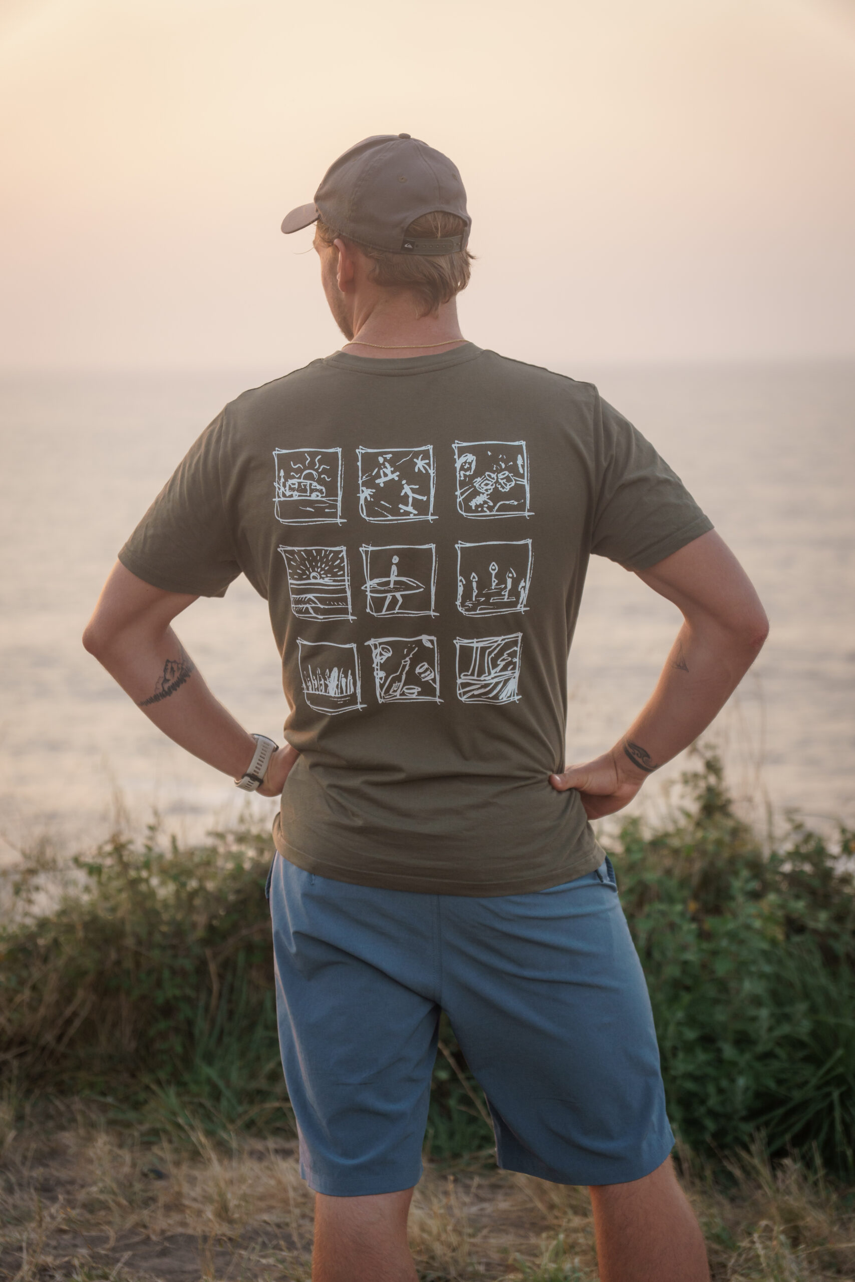Minimalistický design ti připomene pravý Surf-Trip Lajf – dny na vlnách, surfskatu a józe, i večery s pivkem nebo vínem při západu slunce. Design navrhla talentovaná Nicole Ammerová, kterou možná znáš z našich kempů – jako účastnici i členku týmu.